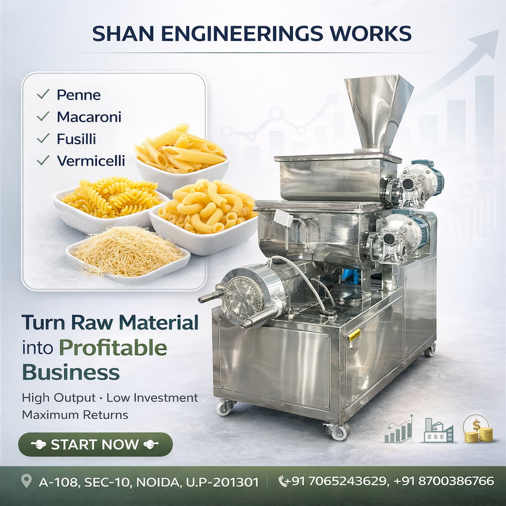 SHAN ENGINEERINGS WORKS is a known company, in Noida and India. We make machines that work well. If you want to make pasta and make your business better choose us. 🚀
