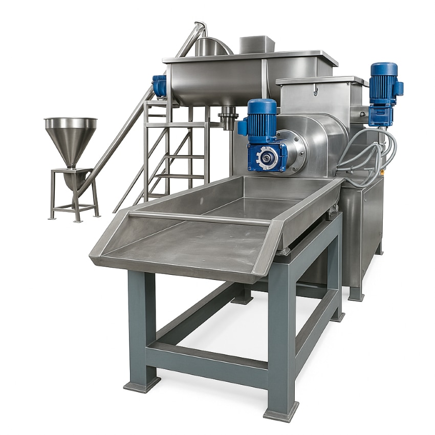 Our Penny Pasta Making Machine is a heavy-duty, stainless-steel industrial pasta extruder designed for high-quality penny-shaped pasta production with smooth cutting, uniform texture, and consistent shape output. Built with food-grade components, energy-efficient motors, precision pasta dies, and low-maintenance technology, it is ideal for small to large pasta manufacturing units, food processing plants, and startups planning to enter the booming pasta industry. With production capacities ranging from 50kg/hr to 500kg/hr,and above it delivers superior performance, low operational cost, and long machine life, ensuring fast ROI and premium pasta output using semolina, wheat flour, or maida. Perfect for entrepreneurs and businesses seeking reliable, high-performance pasta machinery with full installation support, training, and after-sales service.